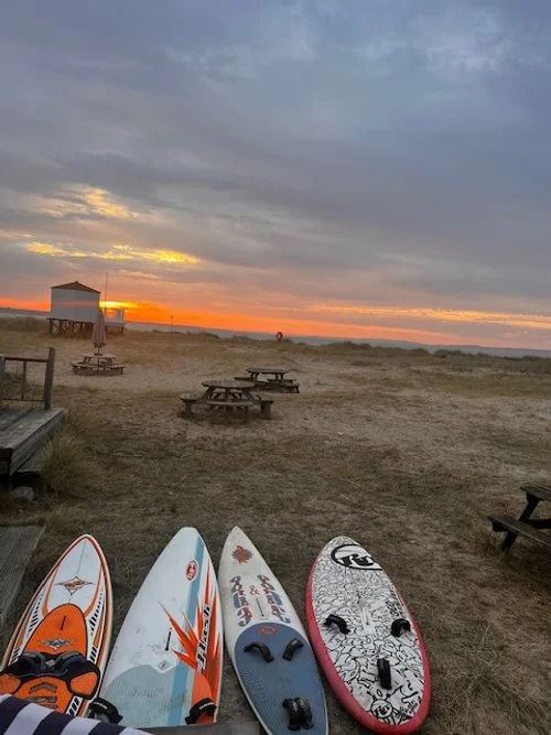 Over the summer we rent out our house to help fund the travel to different sailing competitions. Whilst we are not in the house, we can stay at the beach hut where me and my brother windsurf amongst other activities i.e kiting, paddle boarding and cycling.